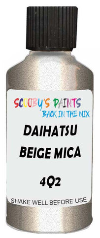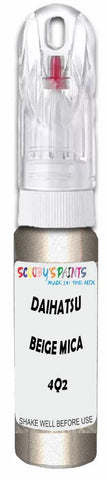Professionally mixed touch-up paint matched to Daihatsu factory colour 4Q2 – Beige Mica Metallic for model years 2004–2008. Ideal for repairing stone chips, light scratches and minor blemishes while helping to prevent corrosion.