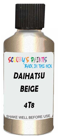 Professionally mixed touch-up paint matched to Daihatsu factory colour 4T8 – Beige Metallic for model years 2008–2012. Ideal for repairing stone chips, light scratches and minor blemishes while helping to prevent corrosion.