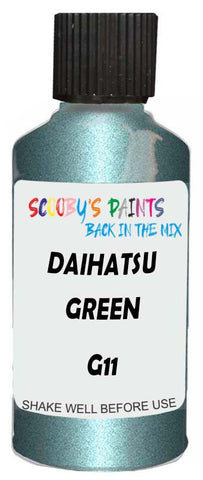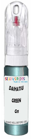 Professionally mixed touch-up paint matched to Daihatsu factory colour G11 – Green Metallic for model years 1990–2003. Ideal for repairing stone chips, light scratches and minor blemishes while helping to prevent corrosion.