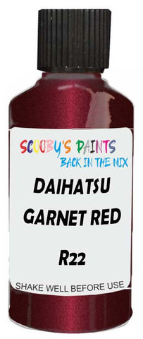 Professionally mixed touch-up paint matched to Daihatsu factory colour R22 – Garnet Red Mica for model years 1995–2003. Ideal for repairing stone chips, light scratches and minor blemishes while helping to prevent corrosion.