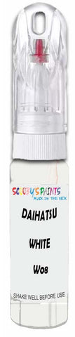 Professionally mixed touch-up paint matched to Daihatsu factory colour W08 – White for model years 1989–2003. Ideal for repairing stone chips, light scratches and minor blemishes while helping to prevent corrosion.