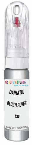 Professionally mixed touch-up paint matched to Daihatsu factory colour S23 – Bluish Silver Metallic for model years 1998–2006. Ideal for repairing stone chips, light scratches and minor blemishes while helping to prevent corrosion.
