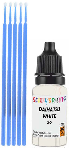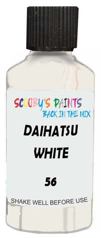 Professionally mixed touch-up paint matched to Daihatsu factory colour 56 – White for model years 2000–2010. Ideal for repairing stone chips, light scratches and minor blemishes while helping to prevent corrosion.