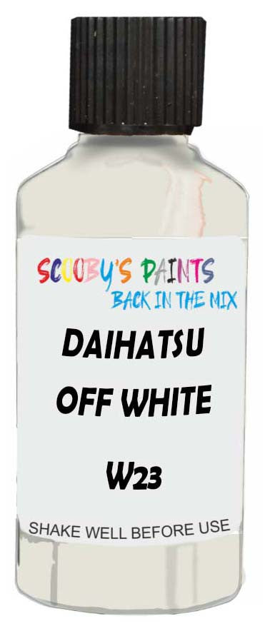 Professionally mixed touch-up paint matched to Daihatsu factory colour W23 – Off White for model years 2006–2013. Ideal for repairing stone chips, light scratches and minor blemishes while helping to prevent corrosion.