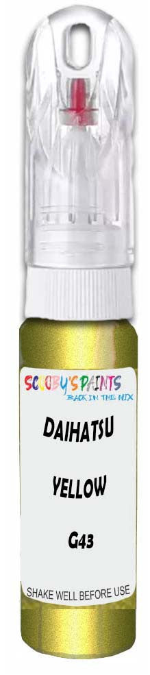 Professionally mixed touch-up paint matched to Daihatsu factory colour G43 – Yellow Green Mica Metallic for model years 2005–2010. Ideal for repairing stone chips, light scratches and minor blemishes while helping to prevent corrosion.