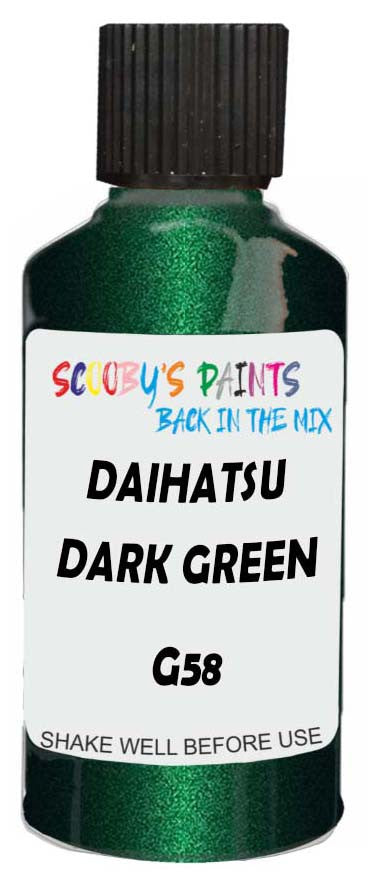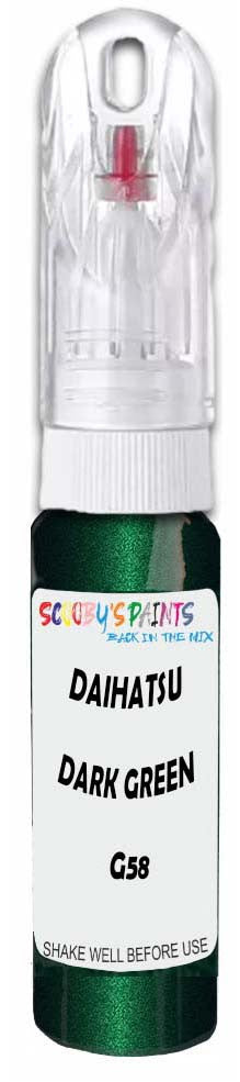 Professionally mixed touch-up paint matched to Daihatsu factory colour G58 – Dark Green Mica for model years 2016–2018. Ideal for repairing stone chips, light scratches and minor blemishes while helping to prevent corrosion.