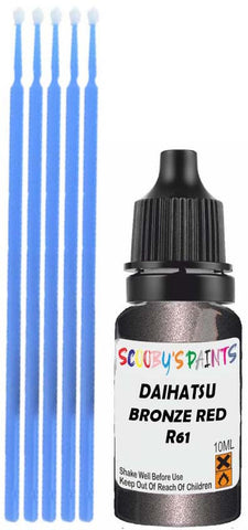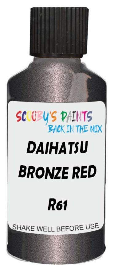 Professionally mixed touch-up paint matched to Daihatsu factory colour R61 – Bronze Red Met Opal for model years 2008–2010. Ideal for repairing stone chips, light scratches and minor blemishes while helping to prevent corrosion.