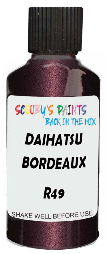 Professionally mixed touch-up paint matched to Daihatsu factory colour R49 – Bordeaux Pearl for model years 2005–2013. Ideal for repairing stone chips, light scratches and minor blemishes while helping to prevent corrosion.