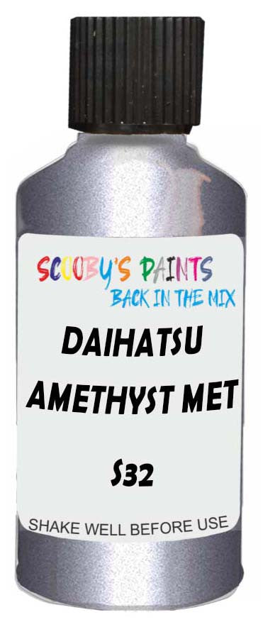 Professionally mixed touch-up paint matched to Daihatsu factory colour S32 – Amethyst Met Pearl for model years 2004–2008. Ideal for repairing stone chips, light scratches and minor blemishes while helping to prevent corrosion.