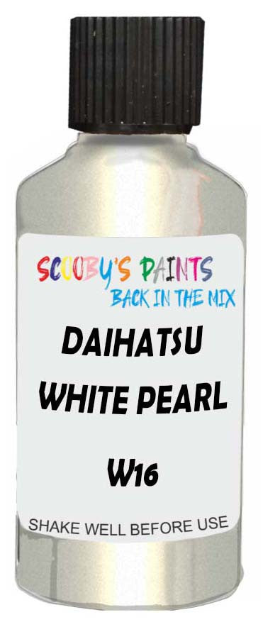 Professionally mixed touch-up paint matched to Daihatsu factory colour W16 – White Pearl for model years 1998–2014. Ideal for repairing stone chips, light scratches and minor blemishes while helping to prevent corrosion.