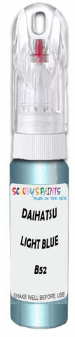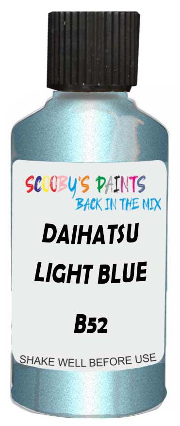 Professionally mixed touch-up paint matched to Daihatsu factory colour B52 – Light Blue Opal Mica Metallic for model years 2001–2006. Ideal for repairing stone chips, light scratches and minor blemishes while helping to prevent corrosion.