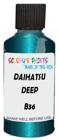 Professionally mixed touch-up paint matched to Daihatsu factory colour B36 – Deep Turquoise Mica Metallic for model years 1996–2003. Ideal for repairing stone chips, light scratches and minor blemishes while helping to prevent corrosion.