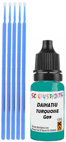 Professionally mixed touch-up paint matched to Daihatsu factory colour G09 – Turquoise for model years 1990–2003. Ideal for repairing stone chips, light scratches and minor blemishes while helping to prevent corrosion.