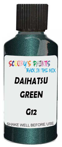 Professionally mixed touch-up paint matched to Daihatsu factory colour G12 – Green Metallic for model years 1991–2003. Ideal for repairing stone chips, light scratches and minor blemishes while helping to prevent corrosion.