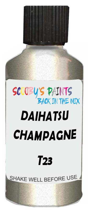 Professionally mixed touch-up paint matched to Daihatsu factory colour T23 – Champagne Metallic for model years 2006–2014. Ideal for repairing stone chips, light scratches and minor blemishes while helping to prevent corrosion.