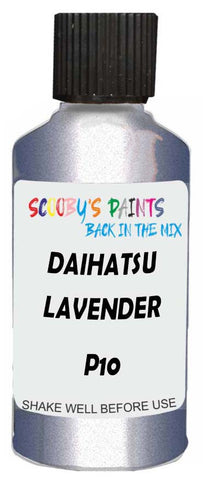 Professionally mixed touch-up paint matched to Daihatsu factory colour P10 – Lavender Opal Metallic for model years 2002–2007. Ideal for repairing stone chips, light scratches and minor blemishes while helping to prevent corrosion.