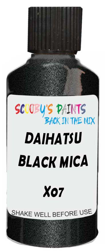 Professionally mixed touch-up paint matched to Daihatsu factory colour X07 – Black Mica Metallic for model years 2004–2017. Ideal for repairing stone chips, light scratches and minor blemishes while helping to prevent corrosion.