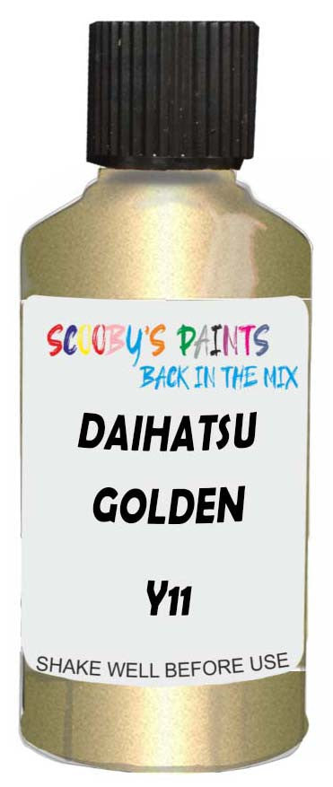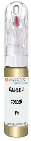 Professionally mixed touch-up paint matched to Daihatsu factory colour Y11 – Golden Yellow Metallic for model years 2009–2012. Ideal for repairing stone chips, light scratches and minor blemishes while helping to prevent corrosion.