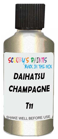 Professionally mixed touch-up paint matched to Daihatsu factory colour T11 – Champagne Gold Metallic for model years 1996–2003. Ideal for repairing stone chips, light scratches and minor blemishes while helping to prevent corrosion.