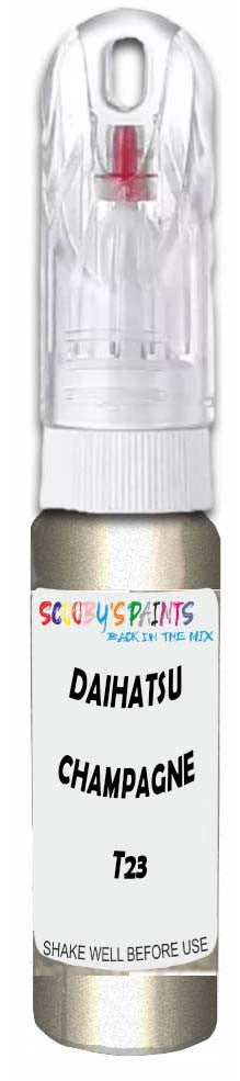Professionally mixed touch-up paint matched to Daihatsu factory colour T23 – Champagne Metallic for model years 2006–2014. Ideal for repairing stone chips, light scratches and minor blemishes while helping to prevent corrosion.