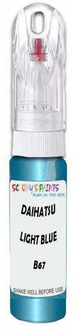 Professionally mixed touch-up paint matched to Daihatsu factory colour B67 – Light Blue Mica Metallic for model years 2007–2018. Ideal for repairing stone chips, light scratches and minor blemishes while helping to prevent corrosion.