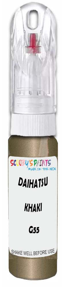 Professionally mixed touch-up paint matched to Daihatsu factory colour G55 – Khaki Metallic for model years 2014–2018. Ideal for repairing stone chips, light scratches and minor blemishes while helping to prevent corrosion.