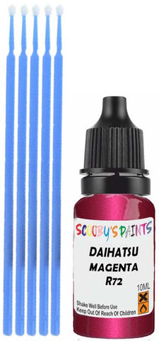 Professionally mixed touch-up paint matched to Daihatsu factory colour R72 – Magenta Mica Metallic for model years 2016–2018. Ideal for repairing stone chips, light scratches and minor blemishes while helping to prevent corrosion.