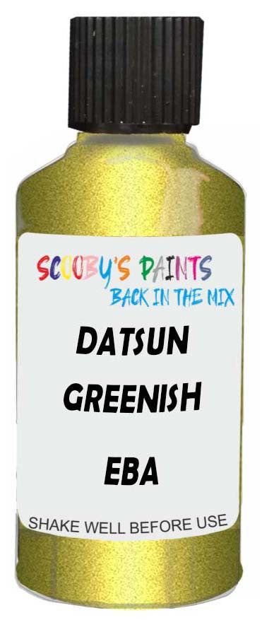 Professionally mixed touch-up paint matched to Datsun factory colour Eba – Greenish Yellow Pearl Metallic for model years 2015–2018. Ideal for repairing stone chips, light scratches and minor blemishes while helping to prevent corrosion.