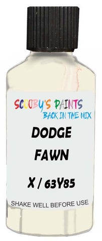 Professionally mixed touch-up paint matched to Dodge factory colour X / 63Y85 – Fawn for model years 1963–1963. Ideal for repairing stone chips, light scratches and minor blemishes while helping to prevent corrosion.