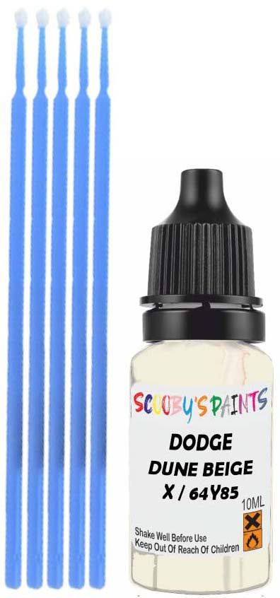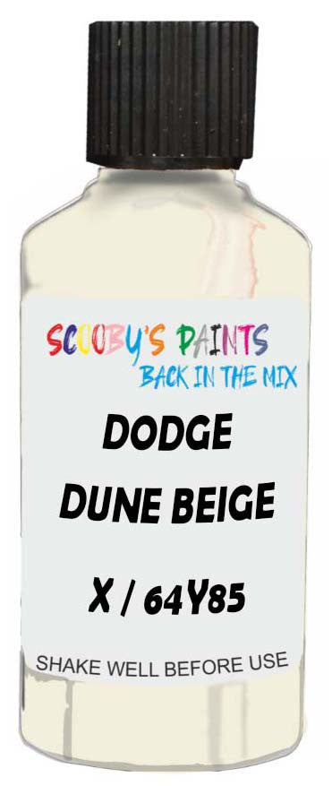 Professionally mixed touch-up paint matched to Dodge factory colour X / 64Y85 – Dune Beige for model years 1964–1964. Ideal for repairing stone chips, light scratches and minor blemishes while helping to prevent corrosion.