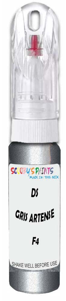 Professionally mixed touch-up paint matched to Ds factory colour F4 – -Automobiles Gris Artense Metallic for model years 2012–2020. Ideal for repairing stone chips, light scratches and minor blemishes while helping to prevent corrosion.