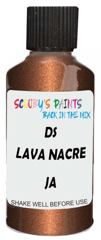 Professionally mixed touch-up paint matched to Ds factory colour Ja – -Automobiles Lava Nacre Metallic for model years 2014–2019. Ideal for repairing stone chips, light scratches and minor blemishes while helping to prevent corrosion.
