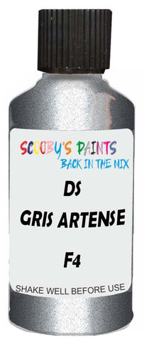 Professionally mixed touch-up paint matched to Ds factory colour F4 – -Automobiles Gris Artense Metallic for model years 2012–2020. Ideal for repairing stone chips, light scratches and minor blemishes while helping to prevent corrosion.