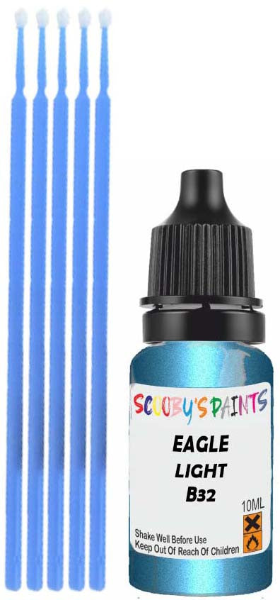 Professionally mixed touch-up paint matched to Eagle factory colour B32 – Light Spectrum Blue Metallic for model years 1992–1992. Ideal for repairing stone chips, light scratches and minor blemishes while helping to prevent corrosion.