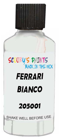 Professionally mixed touch-up paint matched to Ferrari factory colour 205001 – Bianco Cervino for model years 2020–2023. Ideal for repairing stone chips, light scratches and minor blemishes while helping to prevent corrosion.