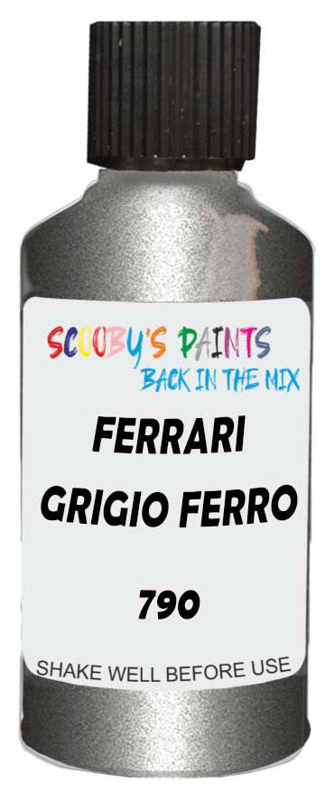 Professionally mixed touch-up paint matched to Ferrari factory colour 790 – Grigio Ferro Metallic for model years 2008–2015. Ideal for repairing stone chips, light scratches and minor blemishes while helping to prevent corrosion.