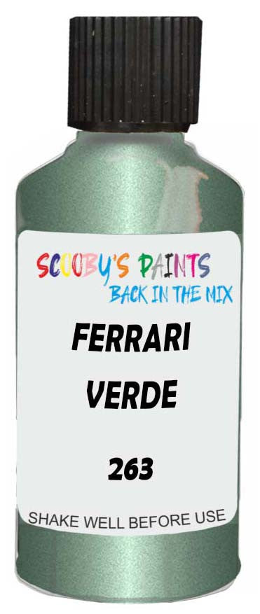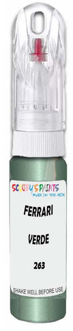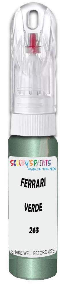 Professionally mixed touch-up paint matched to Ferrari factory colour 263 – Verde Francesca for model years 2021–2021. Ideal for repairing stone chips, light scratches and minor blemishes while helping to prevent corrosion.
