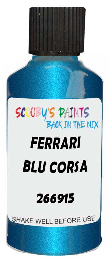 Professionally mixed touch-up paint matched to Ferrari factory colour 266915 – Blu Corsa Pearl for model years 2015–2023. Ideal for repairing stone chips, light scratches and minor blemishes while helping to prevent corrosion.
