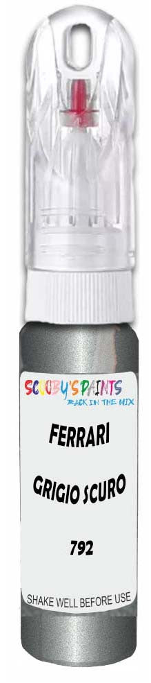 Professionally mixed touch-up paint matched to Ferrari factory colour 792 – Grigio Scuro for model years 2008–2023. Ideal for repairing stone chips, light scratches and minor blemishes while helping to prevent corrosion.