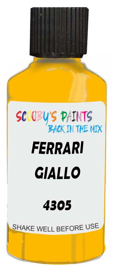 Professionally mixed touch-up paint matched to Ferrari factory colour 4305 – Giallo Modena for model years 1998–2023. Ideal for repairing stone chips, light scratches and minor blemishes while helping to prevent corrosion.