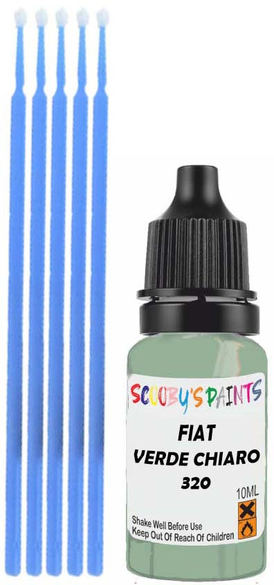 Professionally mixed touch-up paint matched to Fiat factory colour 320 – Verde Chiaro for model years 1935–1955. Ideal for repairing stone chips, light scratches and minor blemishes while helping to prevent corrosion.