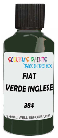 Professionally mixed touch-up paint matched to Fiat factory colour 384 – Verde Inglese for model years 1960–1973. Ideal for repairing stone chips, light scratches and minor blemishes while helping to prevent corrosion.