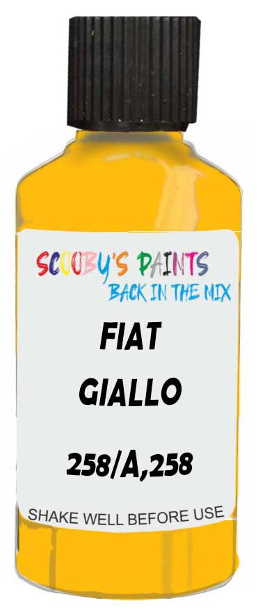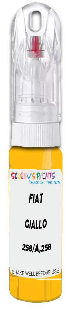 Professionally mixed touch-up paint matched to Fiat factory colour 258/A,258 – Giallo Modena for model years 2017–2021. Ideal for repairing stone chips, light scratches and minor blemishes while helping to prevent corrosion.