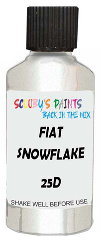 Professionally mixed touch-up paint matched to Fiat factory colour 25D – Snowflake White Pearl for model years 2017–2020. Ideal for repairing stone chips, light scratches and minor blemishes while helping to prevent corrosion.