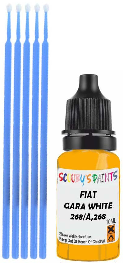 Professionally mixed touch-up paint matched to Fiat factory colour 268/A,268 – Gara White for model years 2009–2023. Ideal for repairing stone chips, light scratches and minor blemishes while helping to prevent corrosion.
