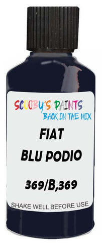 Professionally mixed touch-up paint matched to Fiat factory colour 369/B,369 – Blu Podio Pearl for model years 2016–2021. Ideal for repairing stone chips, light scratches and minor blemishes while helping to prevent corrosion.
