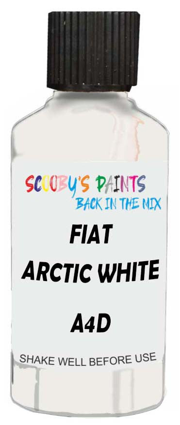 Professionally mixed touch-up paint matched to Fiat factory colour A4D – Arctic White for model years 2017–2020. Ideal for repairing stone chips, light scratches and minor blemishes while helping to prevent corrosion.