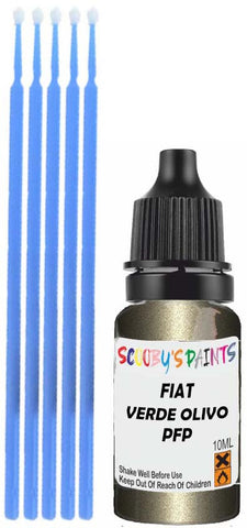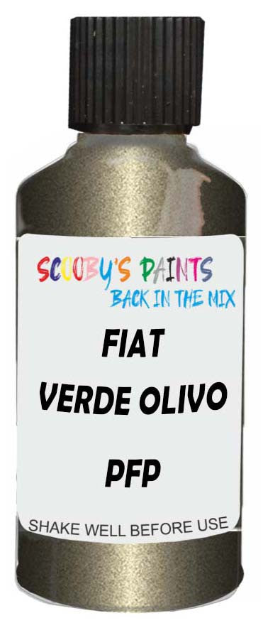 Professionally mixed touch-up paint matched to Fiat factory colour Pfp – Verde Olivo Pearl for model years 2011–2021. Ideal for repairing stone chips, light scratches and minor blemishes while helping to prevent corrosion.