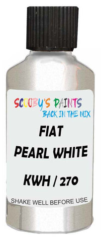 Professionally mixed touch-up paint matched to Fiat factory colour Kwh / 270 – Pearl White for model years 2011–2022. Ideal for repairing stone chips, light scratches and minor blemishes while helping to prevent corrosion.