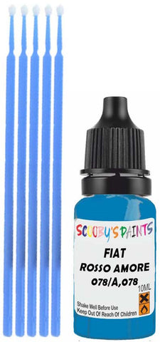 Professionally mixed touch-up paint matched to Fiat factory colour 078/A,078 – Rosso Amore for model years 2016–2022. Ideal for repairing stone chips, light scratches and minor blemishes while helping to prevent corrosion.